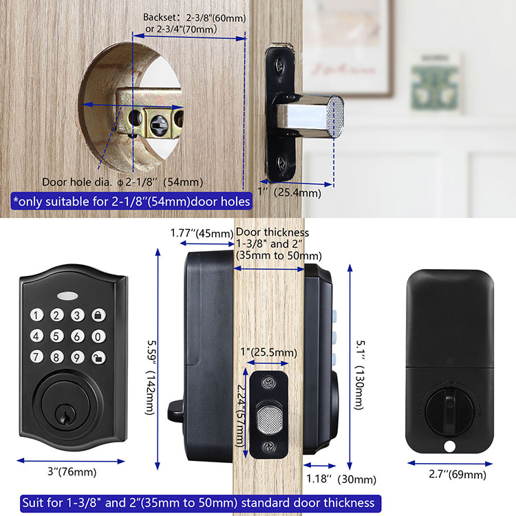 | Ajtó vastagsága: | 35-50 mm | Kód hossza: | 6-13 számjegy |